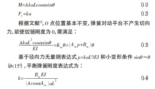 式中:k—零長(zhǎng)彈簧剛度系數(shù);r , a—零長(zhǎng)彈簧 上 下安裝點(diǎn)距鉸鏈O的距離(安裝半徑); β—彈簧安裝角度;θ—動(dòng)平臺(tái)轉(zhuǎn)過的角度。由公式(3),