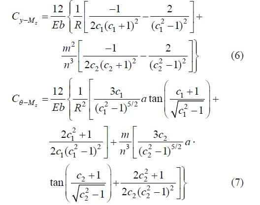 短半軸 | Cx-Fx /(×10-8m/N) | Cy-Fy (×10-7m/N) | Cy-Mz /(×10-4N-1) | C /(×10N) | ||||||||
