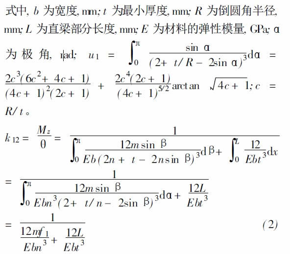1.1 倒圓角直梁型和橢圓直梁復(fù)合型柔性鉸鏈剛度計(jì)算公式