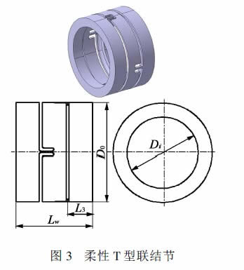 由拋物線直梁復(fù)合型柔性鉸鏈 構(gòu)成柔性T型聯(lián)結(jié)節(jié) |