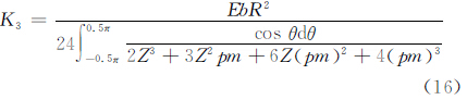 令m=t/R,d3=pt,將式(14)、式(15)、式(6)代入式(1)可得轉(zhuǎn)動(dòng)剛度