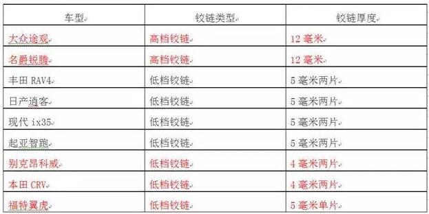 鉸鏈,這個用以固定車門的部件,關(guān)系著避免車門在撞擊或長時間使用下與車身產(chǎn)生錯位,但絕對不能光憑鉸鏈厚度就斷定一臺車的安全性甚至車廠良心,如同前面提及,車輛安全還是必須用整體去衡量,否則每個人都可以當(dāng)汽車設(shè)計師了。并且,光是評斷一個鉸鏈,只參考厚度數(shù)據(jù)也完全不足,客觀角度下,厚度、材質(zhì)、面積、結(jié)構(gòu)、工藝五項缺一不可。